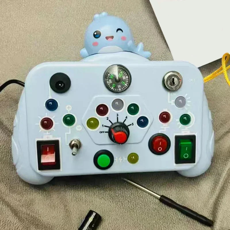 Kids will love flipping switches and watching the LED lights turn on and off, making learning about circuits, power, and light safe and exciting. Each switch offers a unique tactile experience, helping toddlers explore and understand different functions through play.